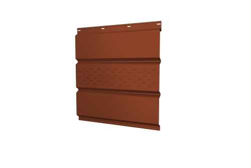 Софит металлический центральная перфорация 0,5 Satin с пленкой RAL 8004 терракота