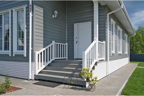 - При использовании покрытия Colority® Print, «ЭкоБрус GL» достигает максимального сходства с клееным брусом. Надежное скрытое сцепление панелей придает фасаду здания естественный вид.