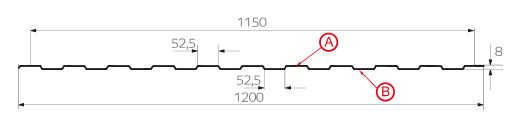 Профлист с наиболее маленькой трапецией. Его назначение – скорее дизайнерская функция, нежели несущая. С-8 убедительно справляется с такими задачами, как: возведение заборов, не подверженных серьёзным снеговым и ветровым нагрузкам, системы подвесных потолков, монтаж вентилируемых фасадов, внутренняя облицовка промышленных строений. Одинаковая с обеих сторон конфигурация профиля делает С-8 универсальным сырьём для разнообразных архитектурных замыслов. Оптимальная толщина металла – от 0,4 до 0,7 мм даёт возможность объектам из профлиста прекрасно справляться с любым своим назначением. А большая полезная ширина (1150 мм) помогает сэкономить на закупке профлистов. По вашему заказу мы можем изготовить листы металлопроката длиной от 0,5 до 12 метров.